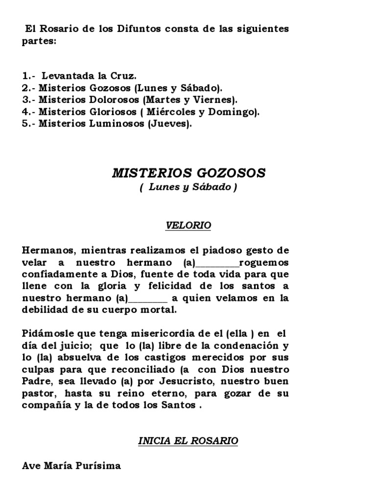 ROSARIO PARA LOS DIFUNTOS CON TODOS LOS MISTERIOS MISTERIOS GOZOSOS Lunes y Sbado Ave Mara Pursima.